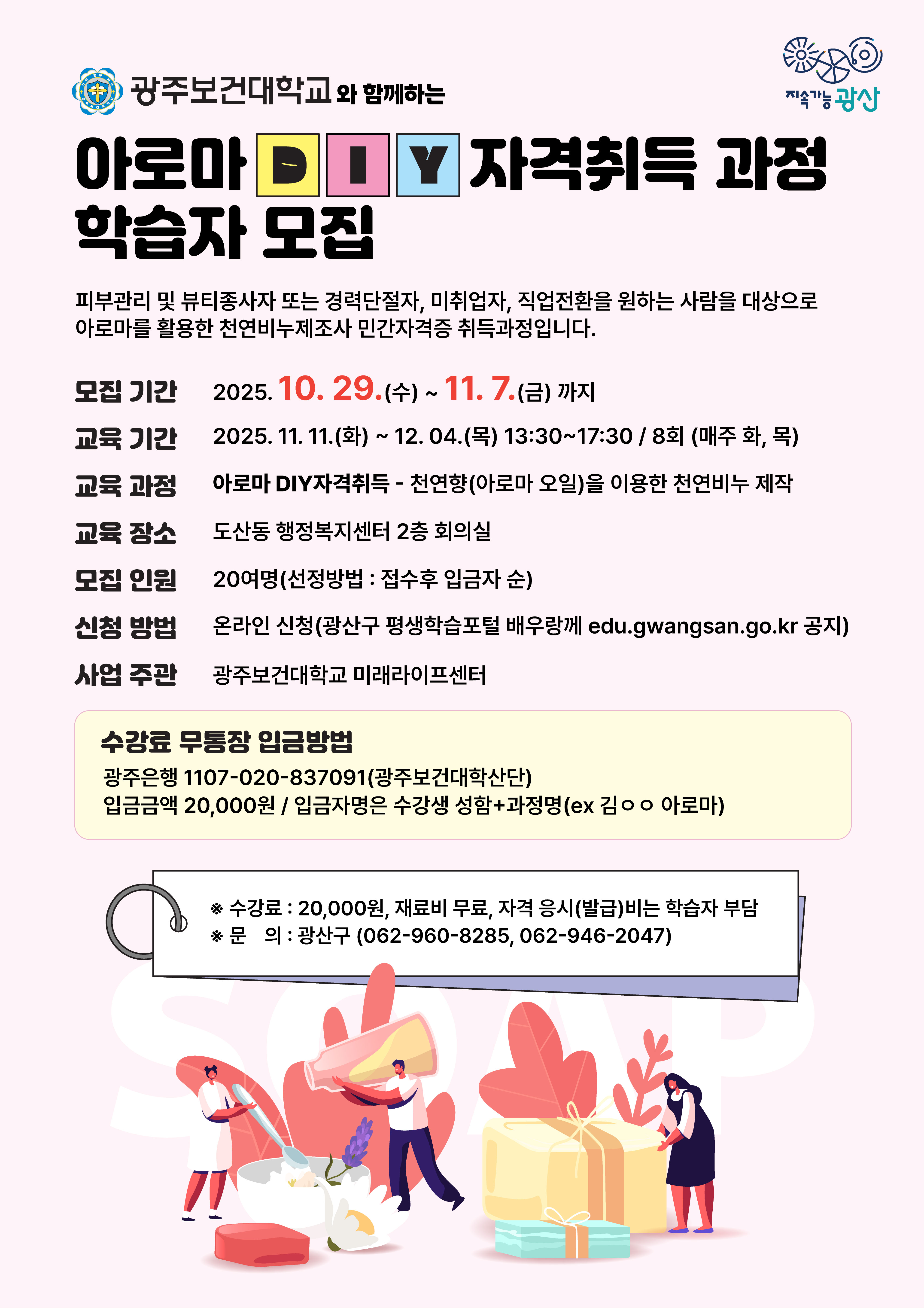 광주보건대와 함께하는 아로마 DIY자격취득 과정 학습자 모집