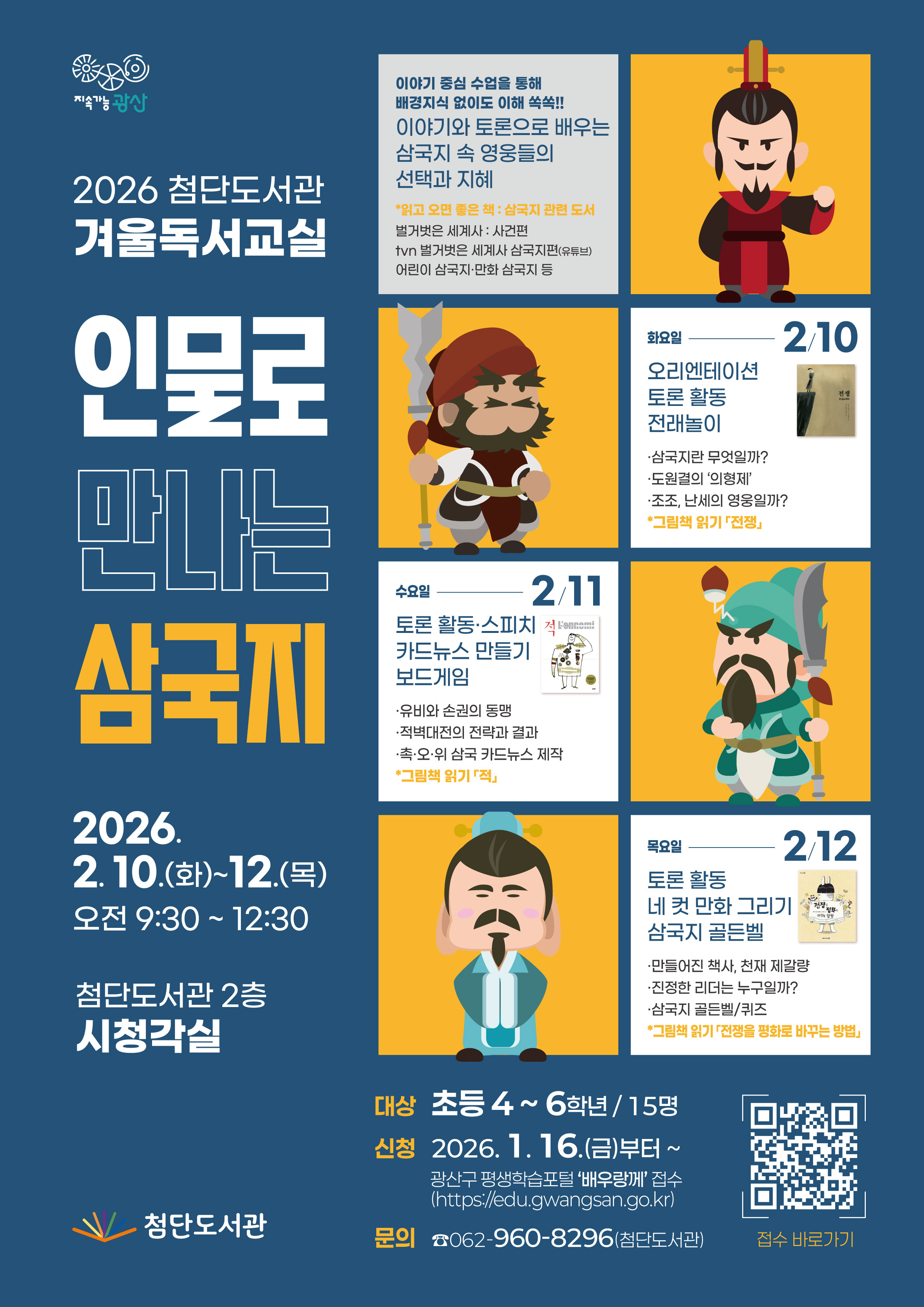 2026년 첨단도서관 겨울독서교실 '인물로 만나는 삼국지' 운영 안내