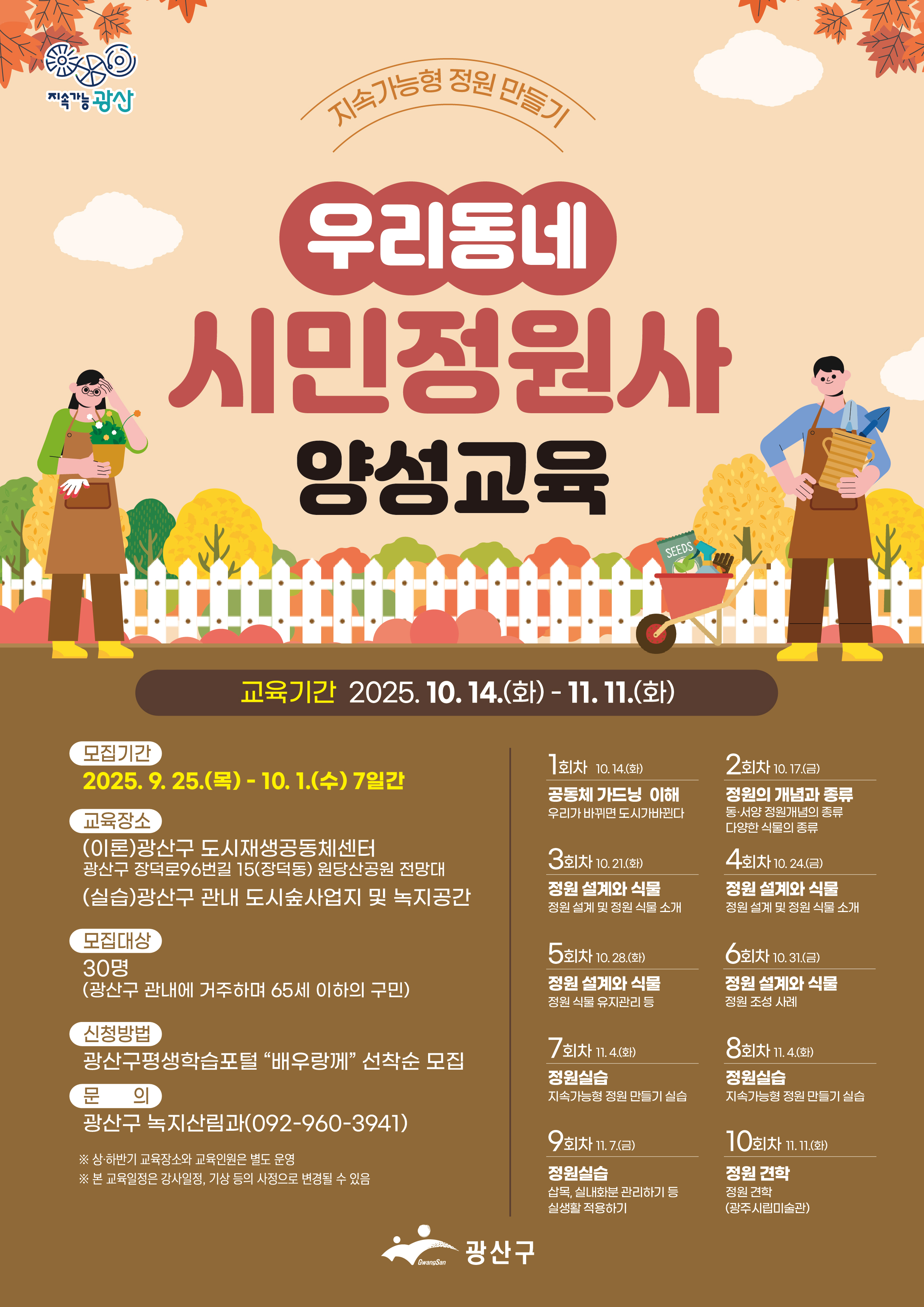 교육장소 | (이론)광산구도시재생공동체센터 (실습)광산구 도시숲사업지 및 녹지공간