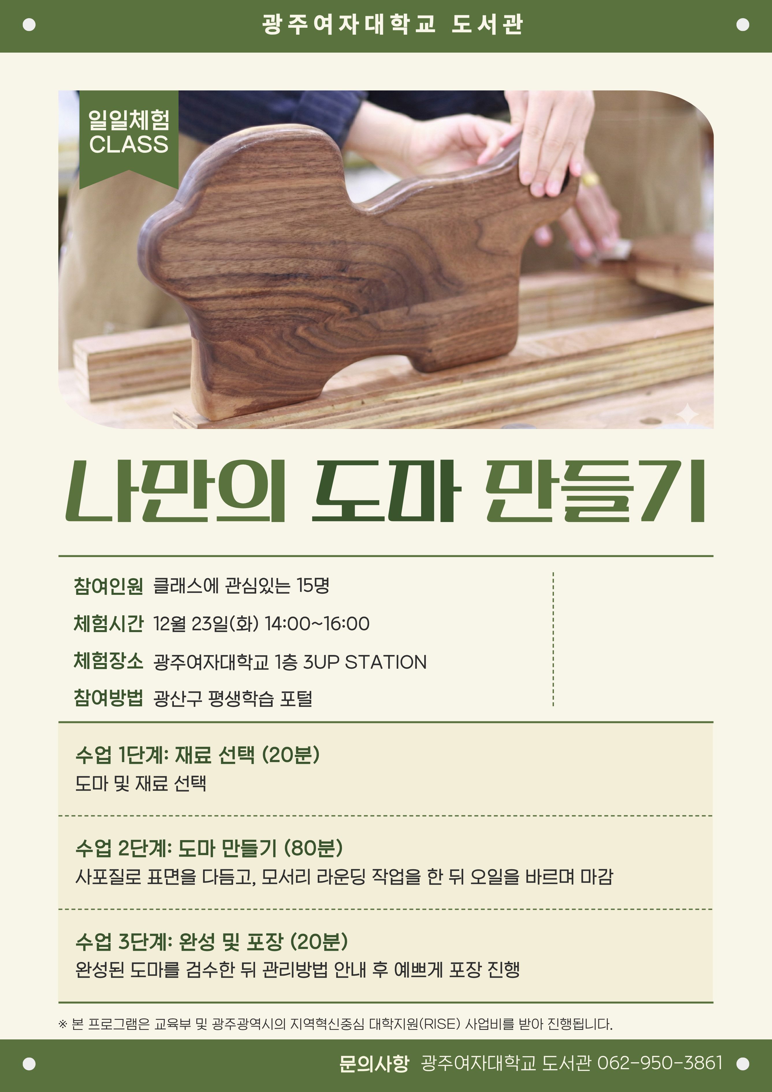 | 교육내용 | 프로그램: 나만의 도마 만들기 클래스