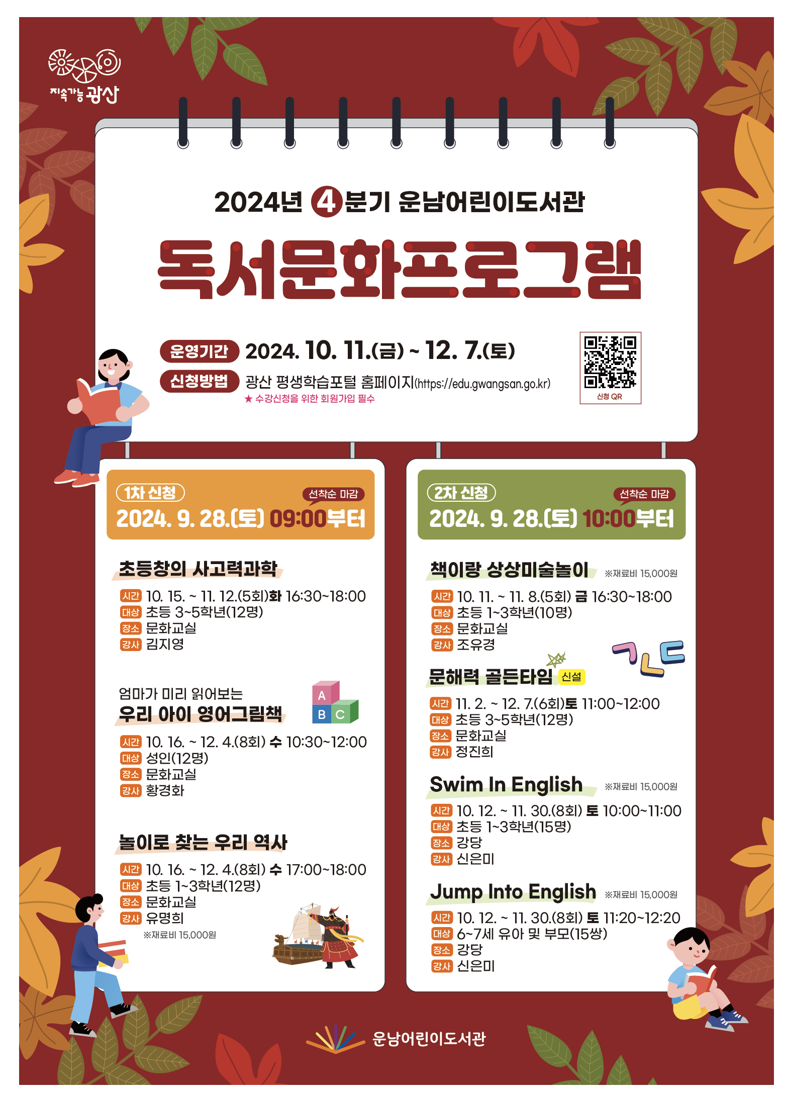(광주광역시 광산구 목련로217번길 10 운남어린이도서관 문화교실)