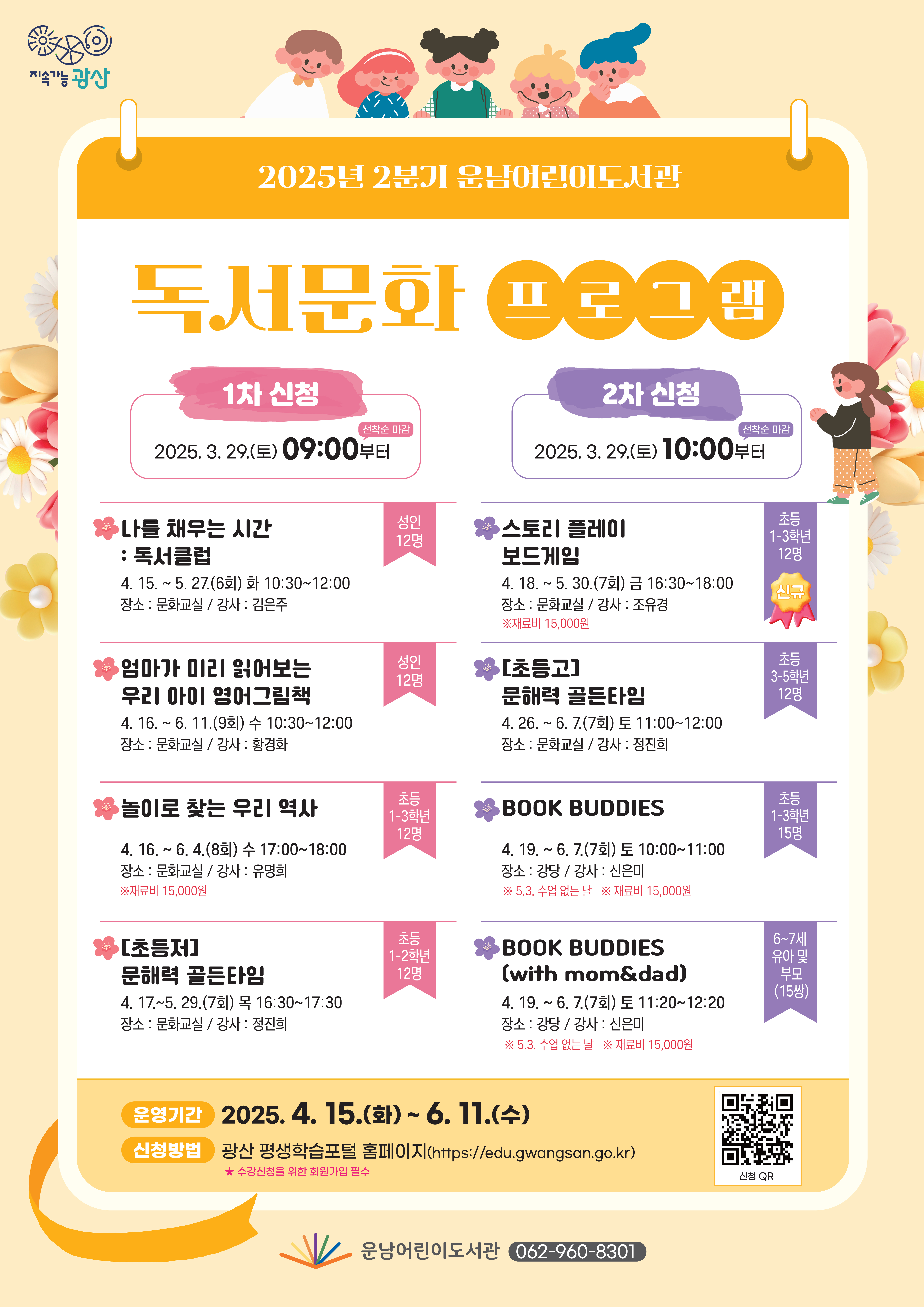 (광주광역시 광산구 목련로217번길 10 운남어린이도서관 문화교실)